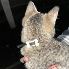 Возле центрального рынка найдена кошка. Питомец на вид домашний, не пугливый. Ошейник в форме косточки.