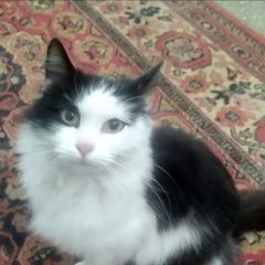 НАЙДЕНА КОШКА ОКРАС: черный с белым ГЛАЗА: жёлто-зеленые ДЛИННОШЕРСТНАЯ Очень ласковая, явно домашняя, сама бежит к людям и плачет. ОЧЕНЬ ХОЧЕТ ДОМОЙ