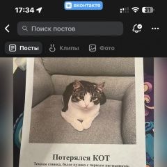 Объявление о том, что пропала кошка размещено в соцсетях: