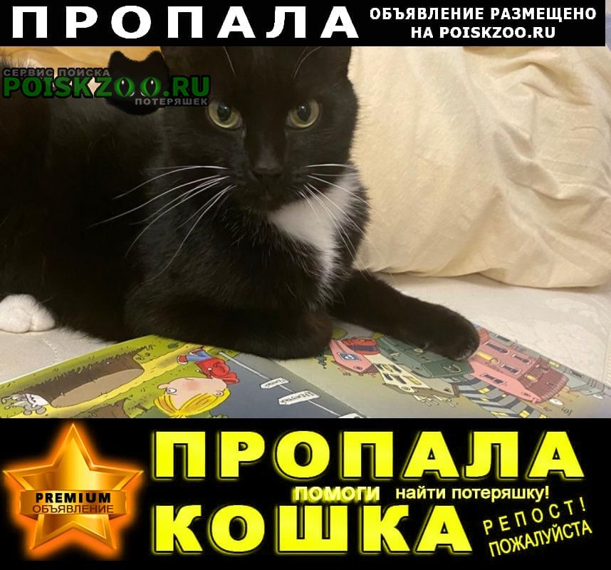 Пропала кошка черная с белой грудкой и белыми носочкам