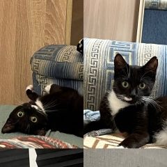 Выпала из окна 31 мая, всего 7 месяцев и пугливая. Отличительные черты: Черная кошка с белым воротником и лапами, на ушки есть оторванный кусочек. Звоните или пишите по номерам:.. Женя.. Нина Вознаграждение 5 000