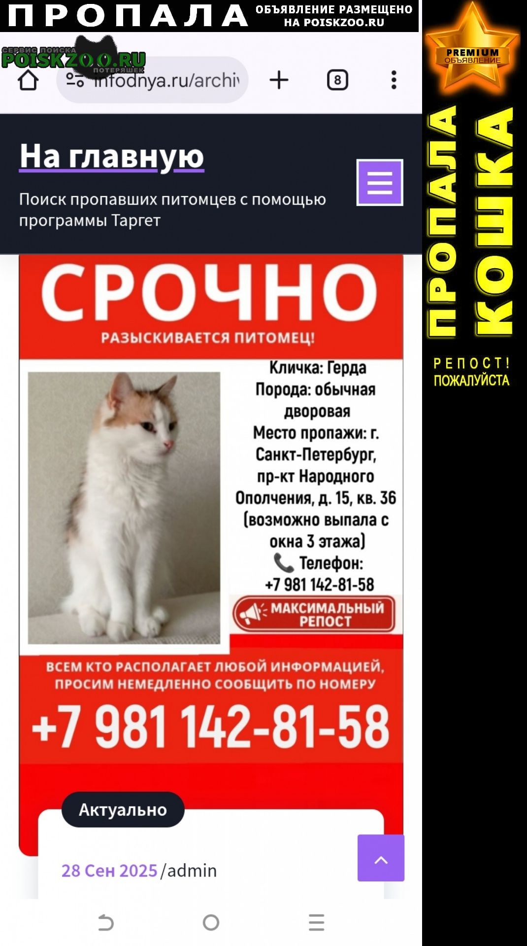 28 сентября 2025  75638  666 Пропала кошка Санкт-Петербург