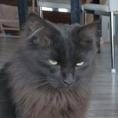 Потерялся котик в районе Коттеджного поселка Альпийская долина, село Кулига Шерсть длинная, черная с коричневым отливом, глаза желтого/зеленого цвета, усы белые