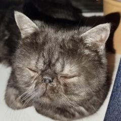 Его приютили, но ИЩЕМ хозяина, отдадим только хозяину Экзотический короткошерстный. Черная шерсть с белым/светлым подшерстком. Очень ласковый и легко идет на контакт. Любит спать вместе с людьми.